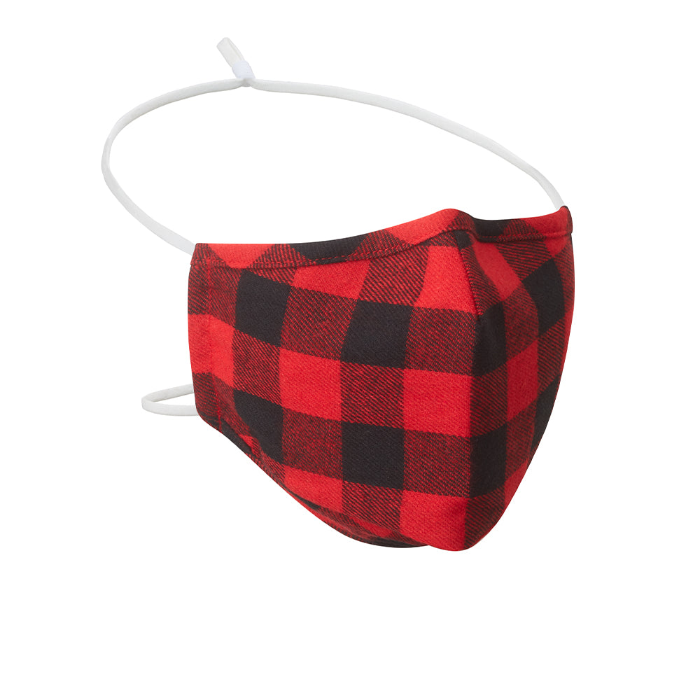 No need to work in the woods to appreciate this classic red and black lumberjack check face mask created in comfy cotton flannel.
